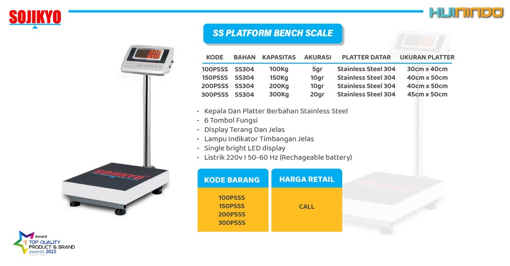 Kapasitas 100kg-300kg Akurasi 5gr-20gr